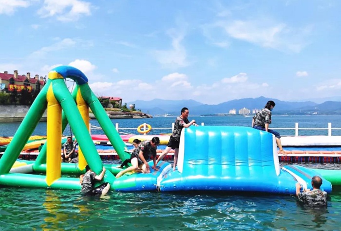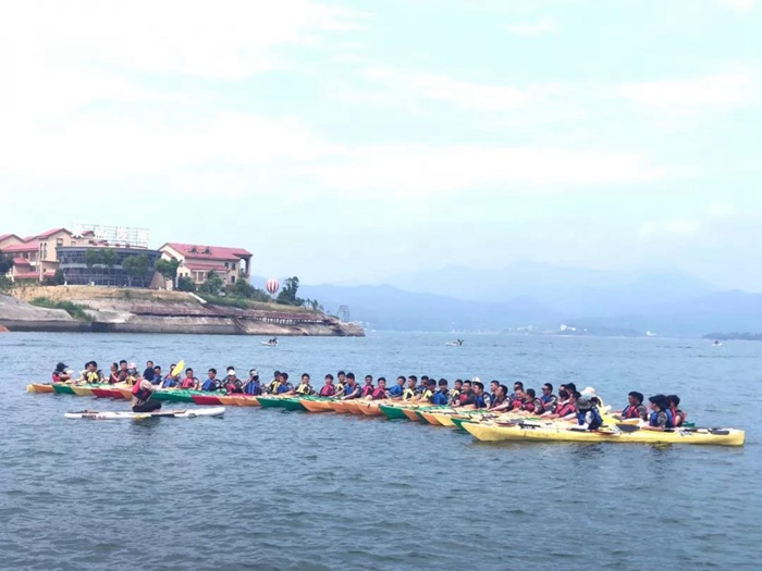 經(jīng)過一晚的休整,第二天,團隊迎來了新一輪的比賽。這次以公司為單位,大家分成了潔能、生產(chǎn)、平臺三個隊伍。比賽共計三輪:水上鋼琴、皮劃艇競賽、水上闖關(guān)。