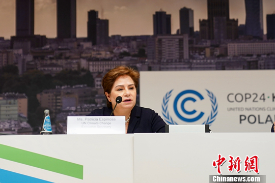 當(dāng)?shù)貢r間12月8日,聯(lián)合國氣候變化框架公約(UNFCCC)秘書處執(zhí)行秘書帕特里夏·埃斯皮諾薩(Patricia Espinosa)告訴記者,中國在氣候領(lǐng)域的巨大努力正在獲得越來越廣泛的認(rèn)可。中新社記者 彭大偉 攝