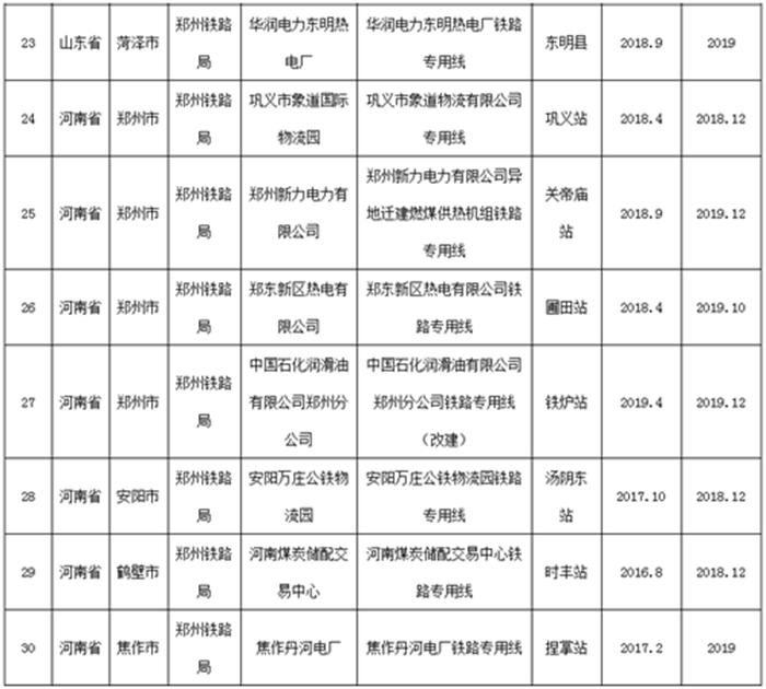 12.加快推進(jìn)鐵路專(zhuān)用線建設(shè)。各地要逐一核實(shí)《交通運(yùn)輸部等九部門(mén)貫徹落實(shí)國(guó)務(wù)院辦公廳〈推進(jìn)運(yùn)輸結(jié)構(gòu)調(diào)整三年行動(dòng)計(jì)劃(2018-2020)〉的通知》中鐵路專(zhuān)用線重點(diǎn)建設(shè)項(xiàng)目(見(jiàn)附件2)落實(shí)情況,按照《關(guān)于加快推進(jìn)鐵路專(zhuān)用線建設(shè)的指導(dǎo)意見(jiàn)》要求,積極推進(jìn)鐵路專(zhuān)用線建設(shè);2019年10月底前,各地要對(duì)大宗貨物年貨運(yùn)量150萬(wàn)噸及以上的大型工礦企業(yè)和新建物流園區(qū)鐵路專(zhuān)用線建設(shè)情況、企業(yè)環(huán)評(píng)批復(fù)要求建設(shè)鐵路專(zhuān)用線落實(shí)情況等進(jìn)行摸排。對(duì)工程進(jìn)度滯后的,要分析查找原因,分類(lèi)提出整改方案,確保2020年基本完成。若涉及規(guī)劃調(diào)整、項(xiàng)目變更、企業(yè)搬遷退出等因素不再建設(shè)的,地方可提出變更申請(qǐng),由主管部門(mén)確認(rèn)。