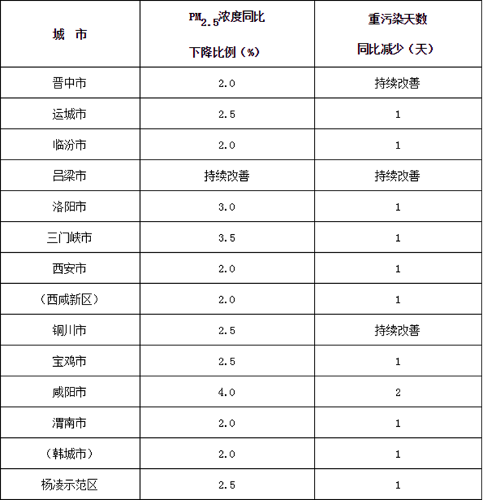 主要目標(biāo):穩(wěn)中求進(jìn),推進(jìn)環(huán)境空氣質(zhì)量持續(xù)改善,汾渭平原全面完成2019年環(huán)境空氣質(zhì)量改善目標(biāo),協(xié)同控制溫室氣體排放,秋冬季期間(2019年10月1日至2020年3月31日),PM2.5平均濃度同比下降3%,重度及以上污染天數(shù)同比減少3%(詳見附件1)。