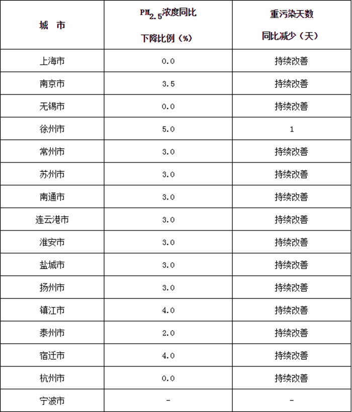 主要目標(biāo):穩(wěn)中求進(jìn),推進(jìn)環(huán)境空氣質(zhì)量持續(xù)改善,長(zhǎng)三角地區(qū)全面完成2019年環(huán)境空氣質(zhì)量改善目標(biāo),協(xié)同控制溫室氣體排放。秋冬季期間(2019年10月1日-2020年3月31日),PM2.5平均濃度同比下降2%,重度及以上污染天數(shù)同比減少2%(詳見(jiàn)附件1)。