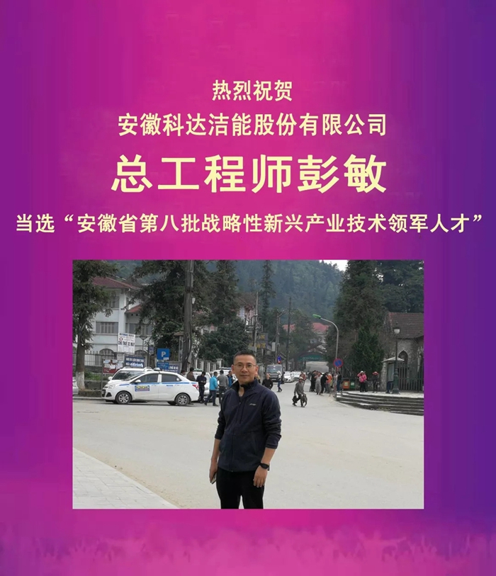 安徽科達(dá)潔能總工程師彭敏榮獲“安徽省第八批戰(zhàn)略性新興產(chǎn)業(yè)技術(shù)領(lǐng)軍人才”稱號(hào)