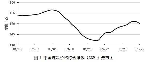 截止2020年7月24日,中國(guó)煤炭?jī)r(jià)格綜合指數(shù)(CCPI)報(bào)收于150.1點(diǎn),較年初下跌2.3%,較去年同期下跌5.4%。