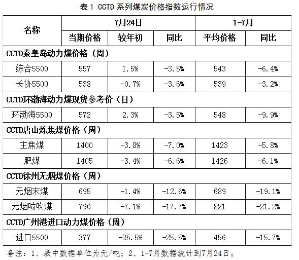 二、1-7月份煤炭?jī)r(jià)格指數(shù)運(yùn)行情況